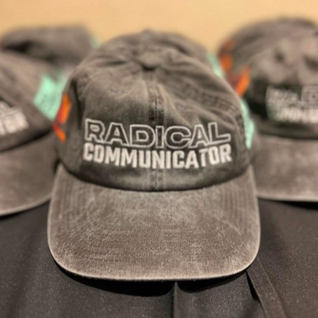 Embroidered "Radical Communicator" hat with ReFrame and RadComms logos on the side